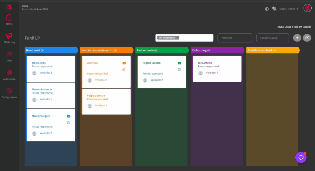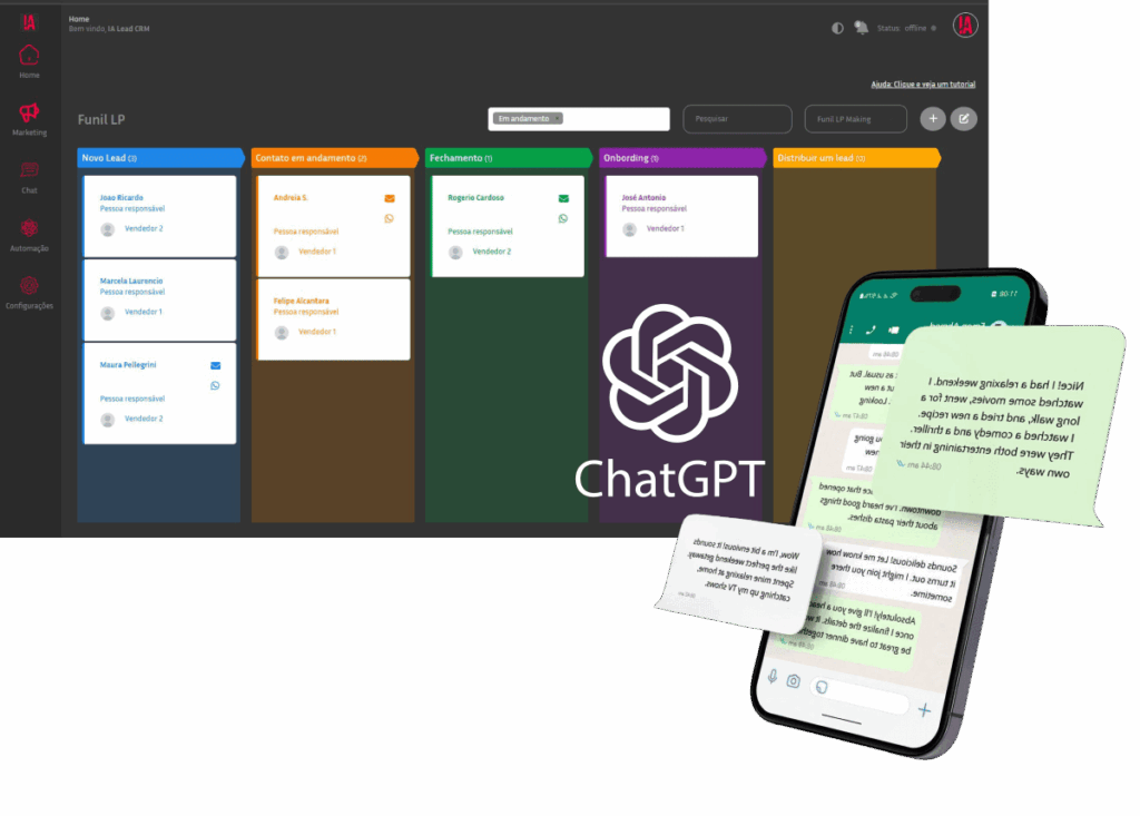 O lead chega no CRM para cada vendedor, e imediatamente nossa IA com o Chatgpt inicia uma conversa com seu lead, tira dúvidas, passa informações importantes e até convida para uma reunião.